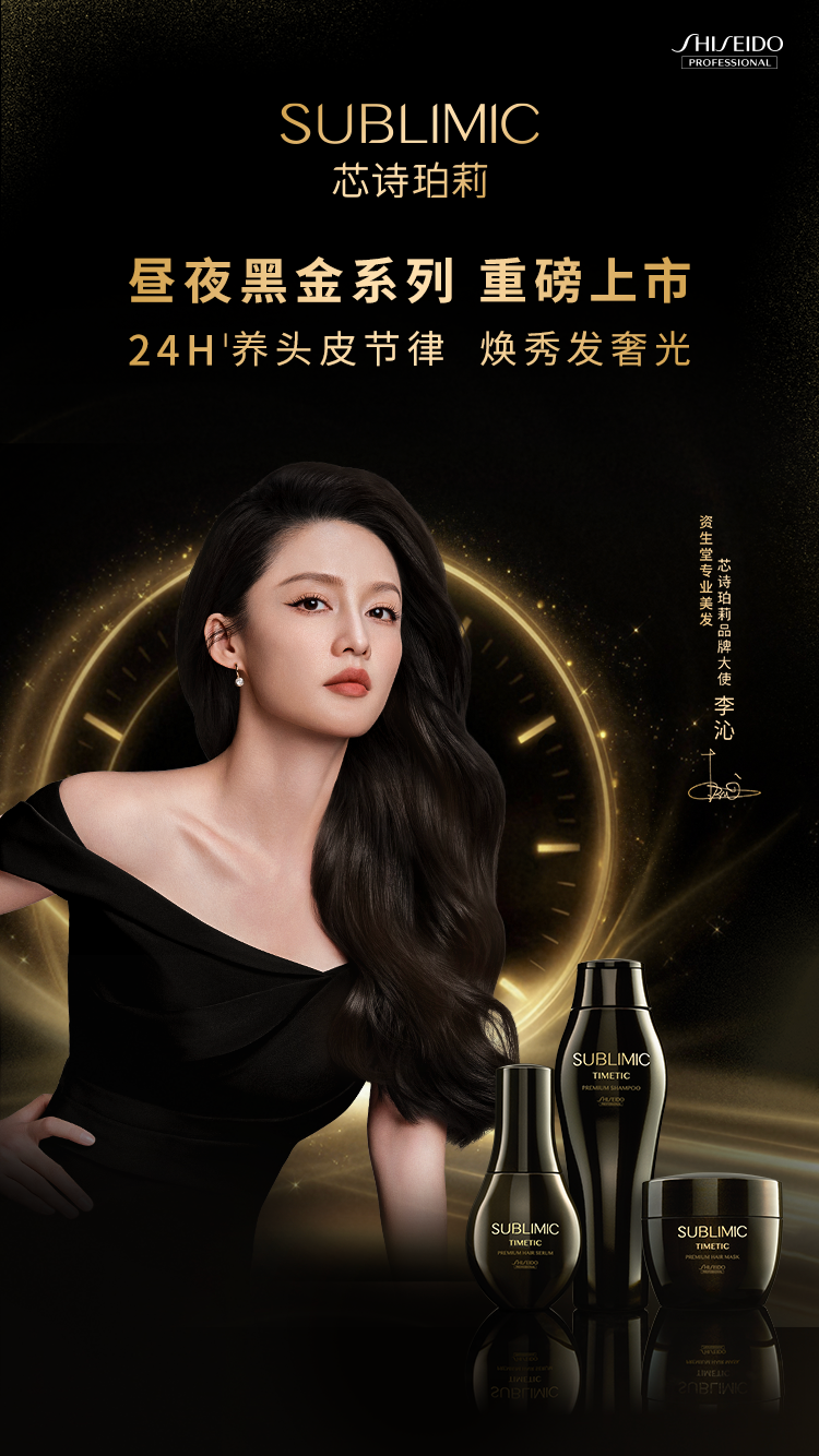 推荐:「点击消失后展开」资生堂芯诗珀莉“昼夜黑金”系列新品介绍,主打24小时养头皮节律,焕发秀发奢光,并邀请李沁作为品牌大使。