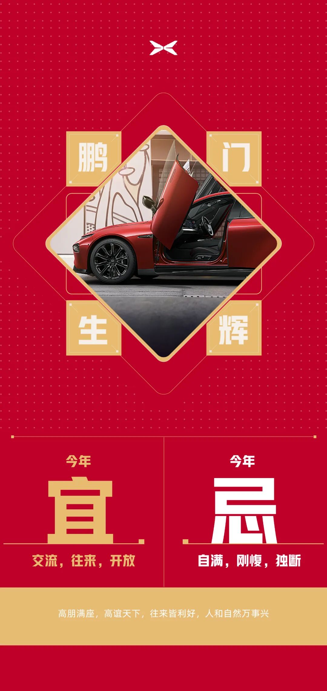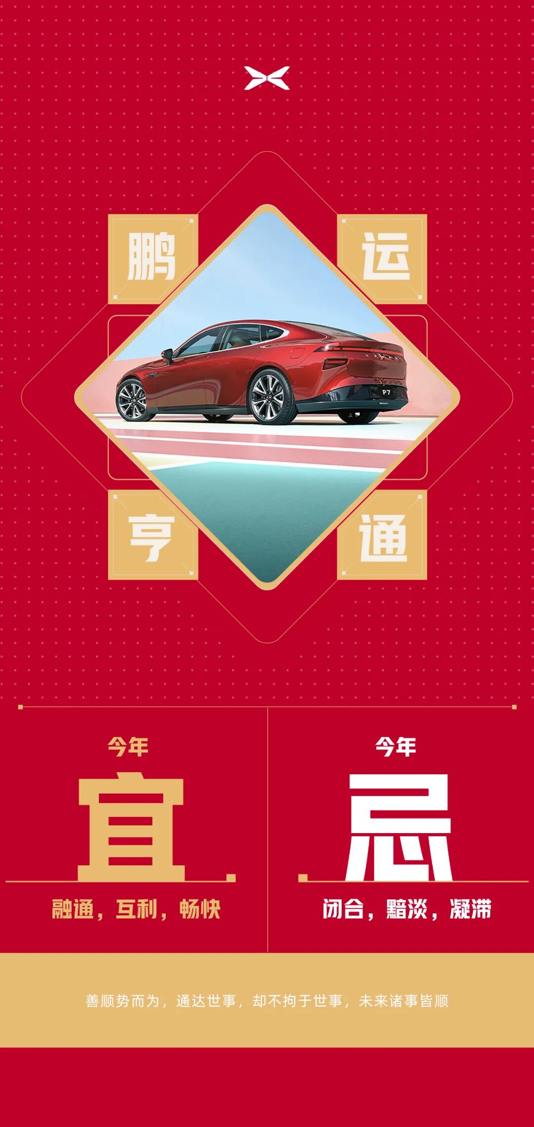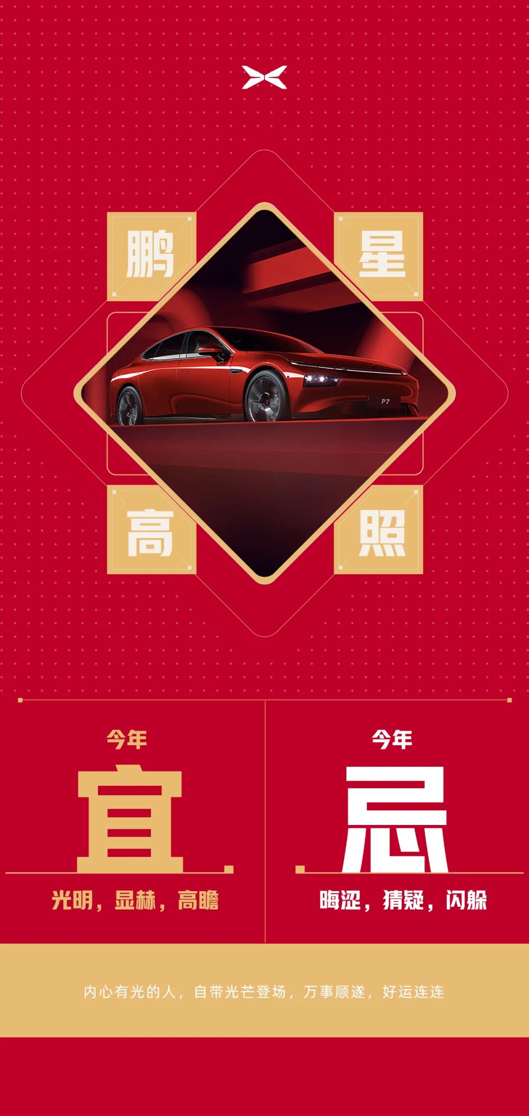 推荐:「长按新年签」抽取个人运程,「背景左滑」查看新年大吉大利壁纸,借此宣传小鹏汽车。