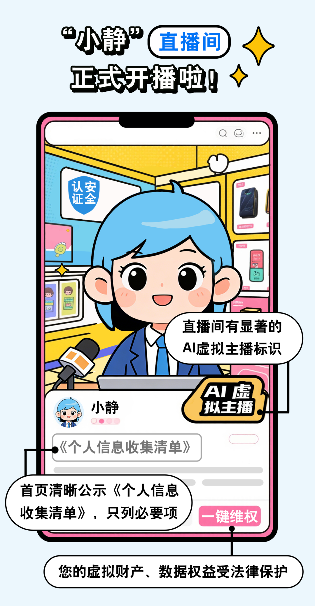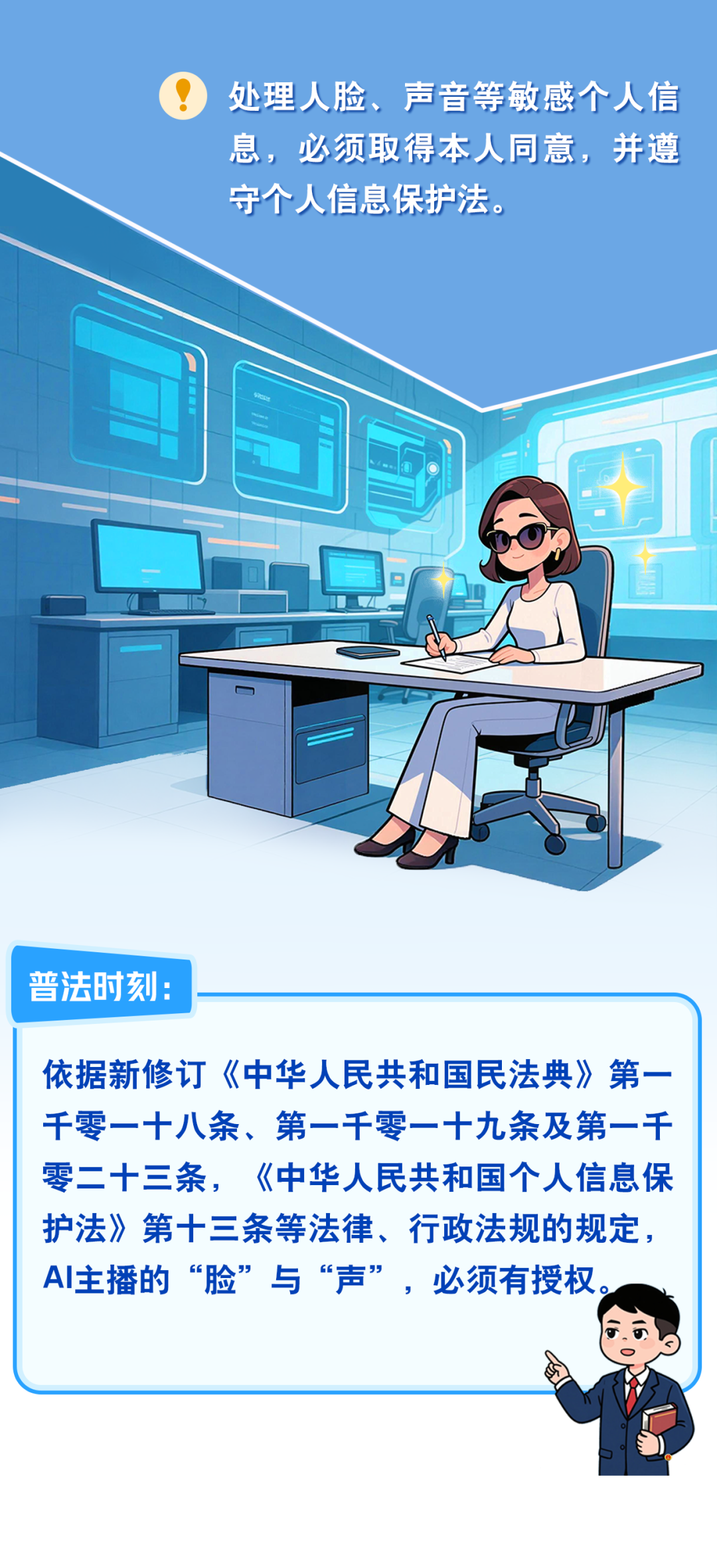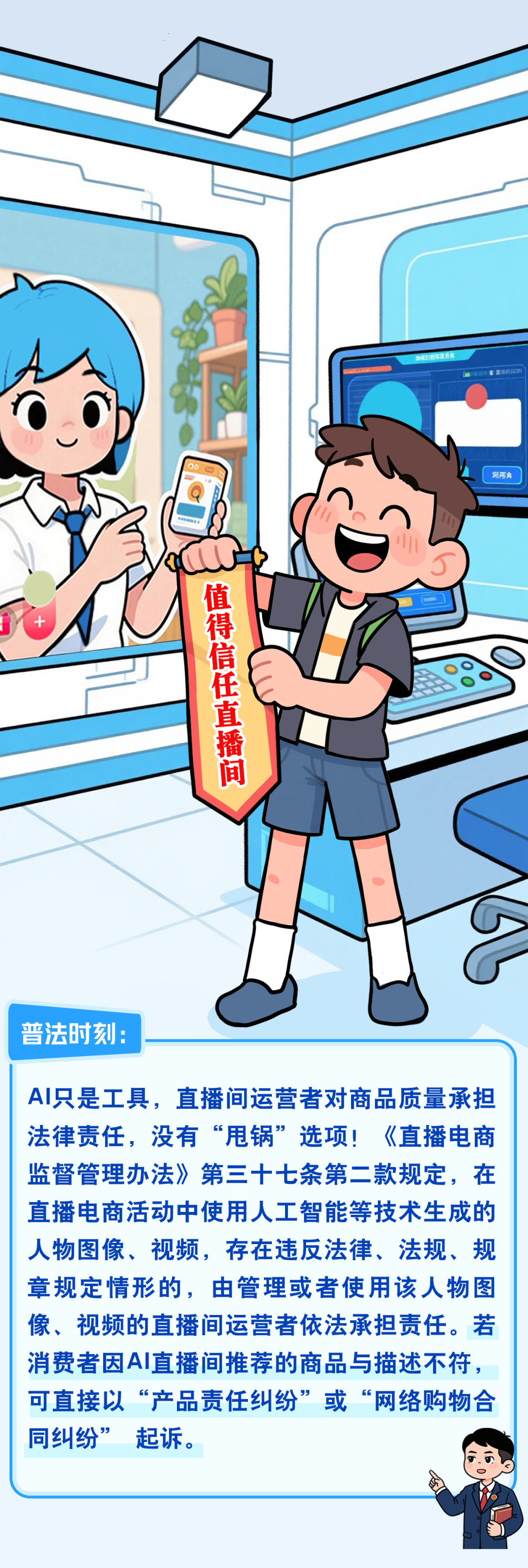 推荐:「点击切换后展开」通过图解数字人主播运营规范,嵌套「点击答题后展开」强调需获授权、合规采集数据并实时监测内容,向大家科普 《网络安全法》内容。